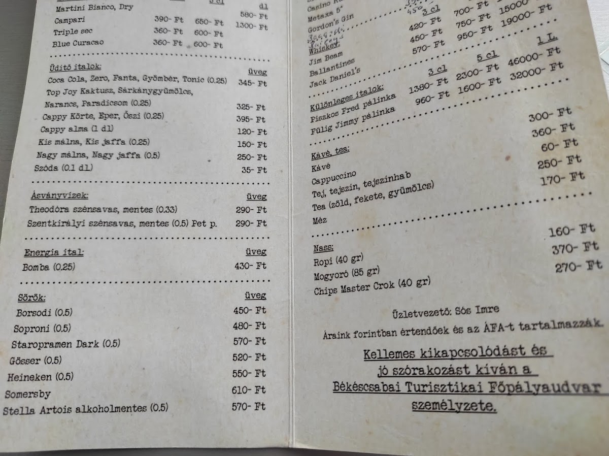 - Menu Highlights: At Peron Presszó, you can enjoy a diverse selection of beverages, from expertly brewed coffee to refreshing drinks, complemented by a tempting array of warm sandwiches.